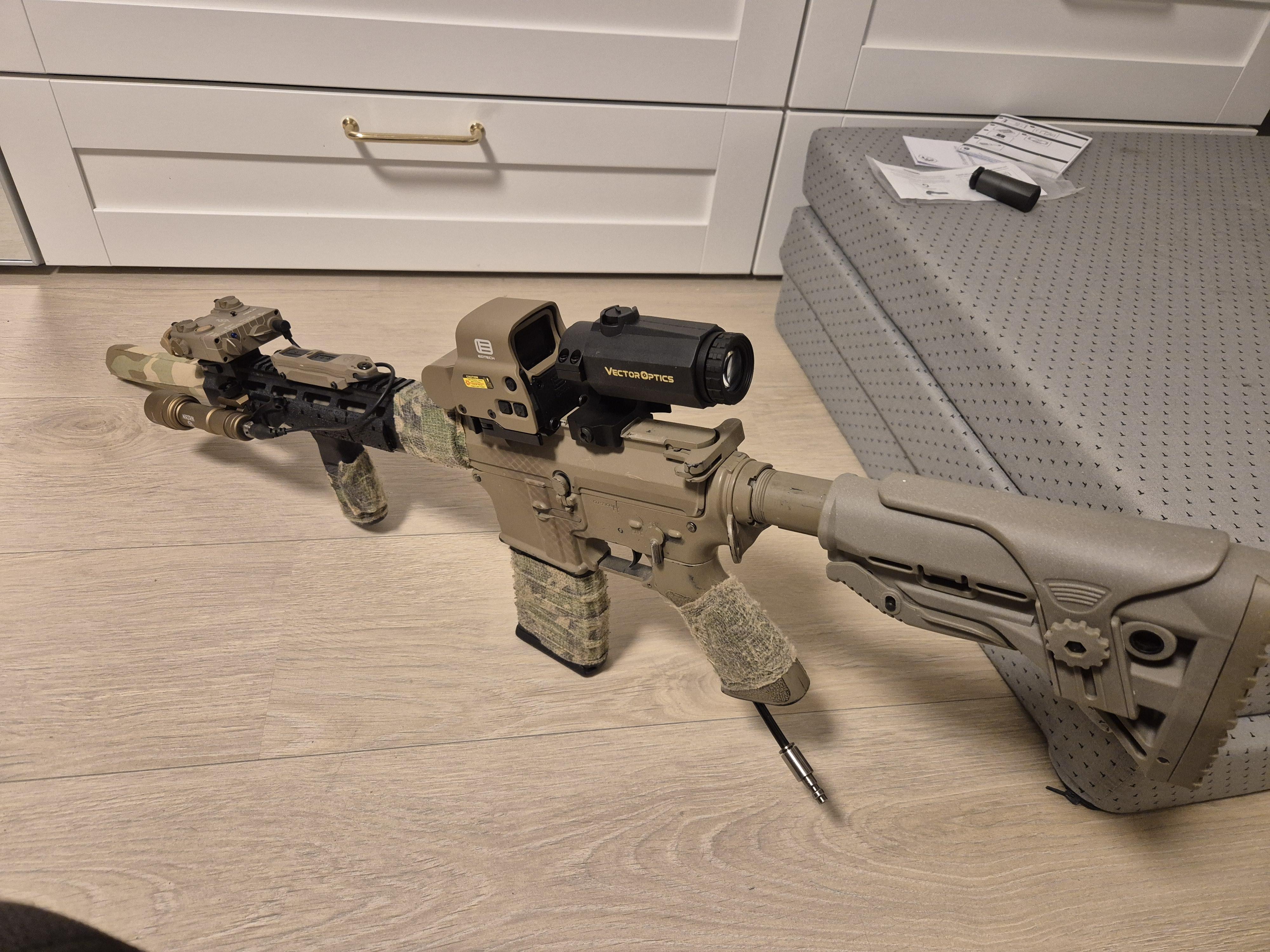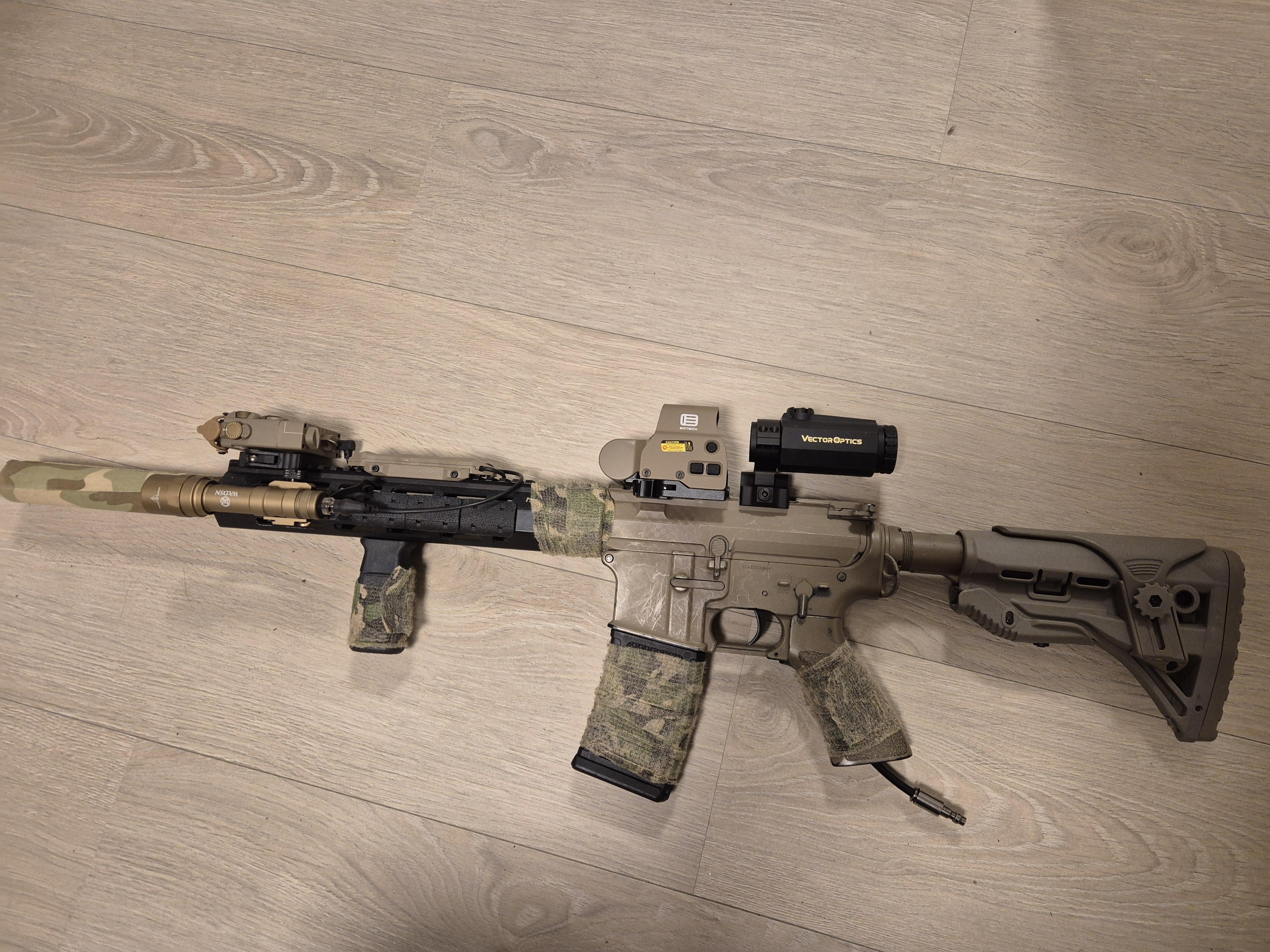 PDW M-4 Sierra CQB Riffel kampklar.💥VFC H&K 416 A5 AEG. Seals No.1 RAL 8000 💥 PTW fra FCC. M-4 Camo. 💥 🫵😎