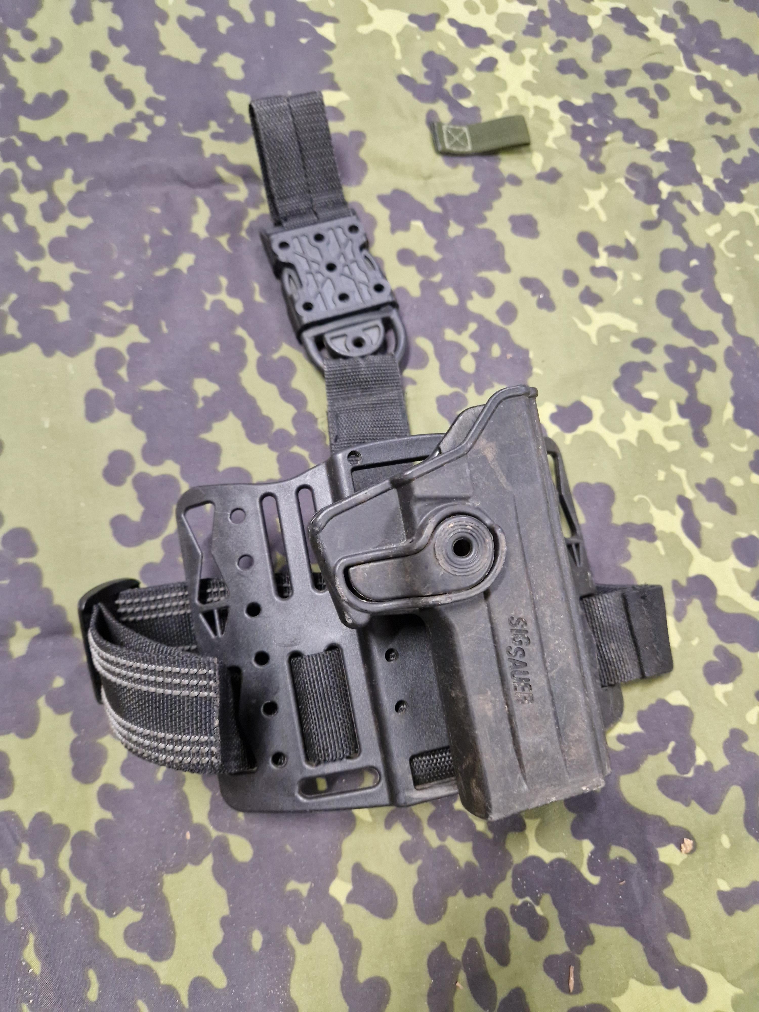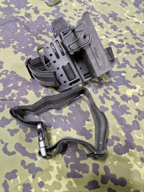 Der er lidt warrior OD pouches - Bladetech lårpanel, med Sig Saur pistol hylster.