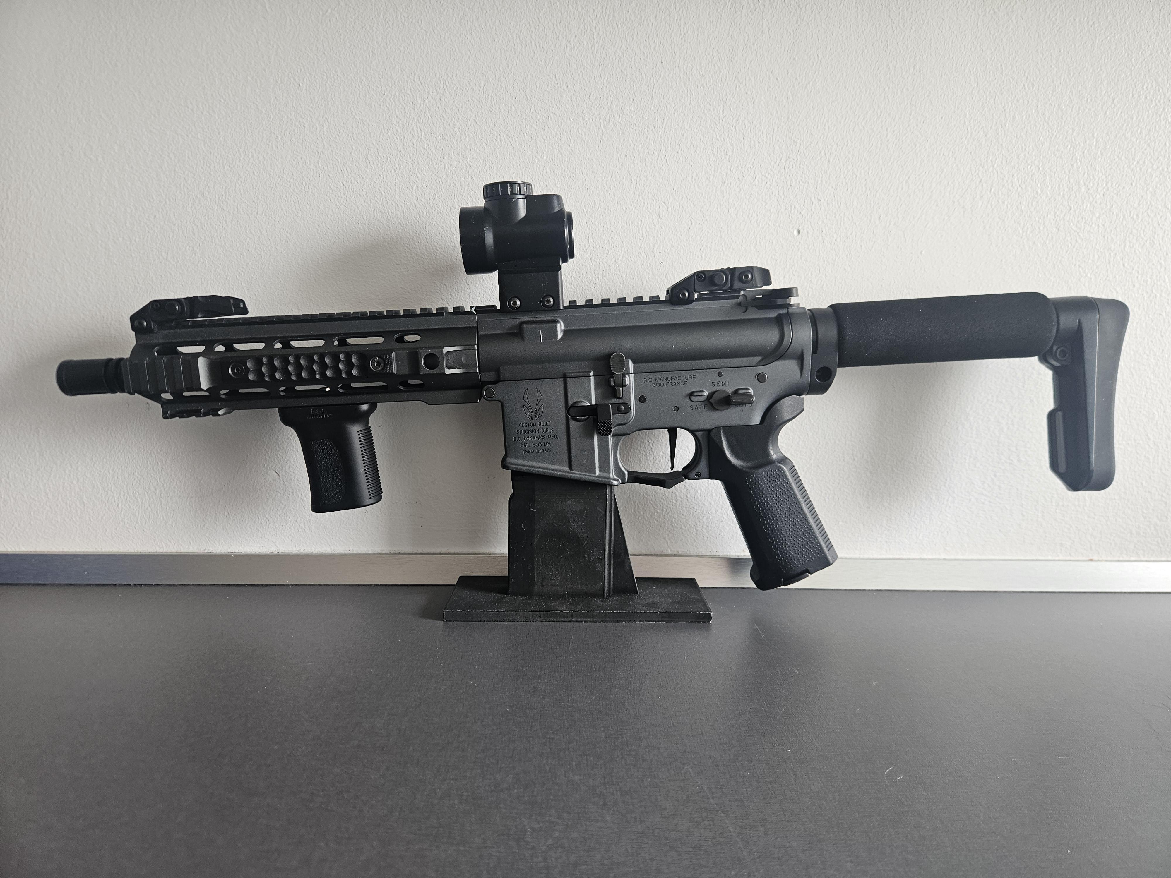 Iron sights + mro basicly alt der sidder på rifflen medfølger.